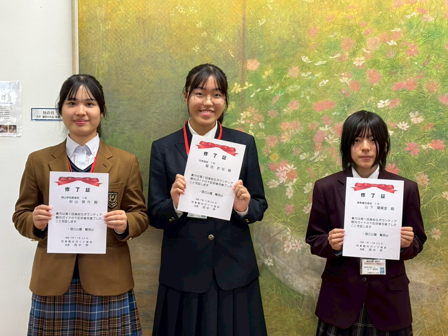 今回の参加者は3名(鷲羽高校、学芸館高校、芳泉高校)で、数あるボランティア活動の中から「ガイド」に興味を持って集まってくれた皆さんです。